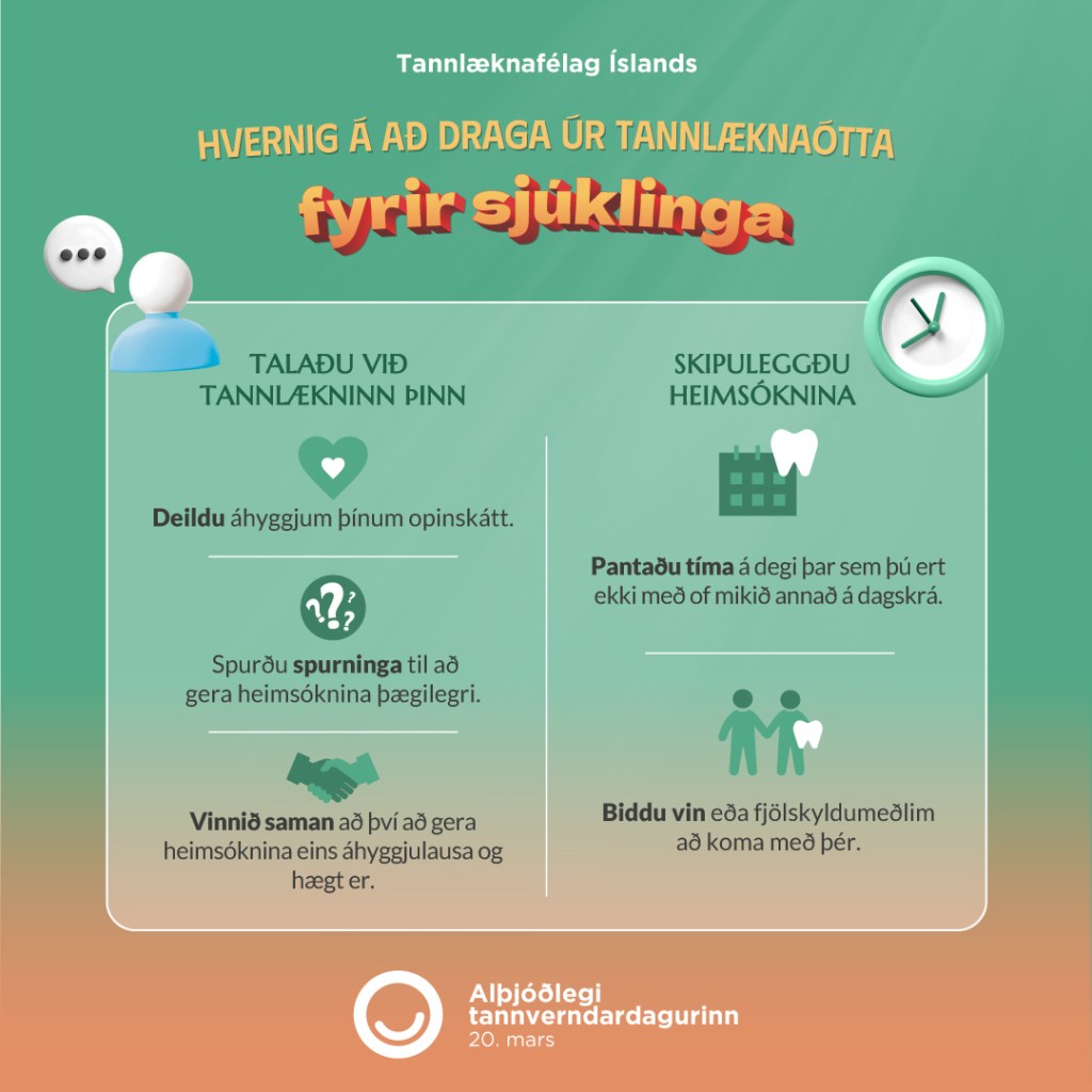 Tannlæknaótti er algengur en við vitum að hægt er að draga úr honum! Með réttum aðferðum, hlýju viðmóti og fræðslu getum við skapað öruggt og þægilegt umhverfi fyrir alla sjúklinga.